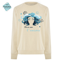 Quan necessites desconnectar de la rutina, puja a l'espai i desconnecta. Al portar aquesta dessuadora i tocar el seu tacte suau entraràs de seguida en un estat de relaxació en el qual sentiràs pau i tranquil·litat. Estaràs en el teu propi món, un lloc en el qual poder crear els teus somnis, dins d'un univers ple de possibilitats infinites. Crea el teu propi espai. És el moment de somiar ben alt!