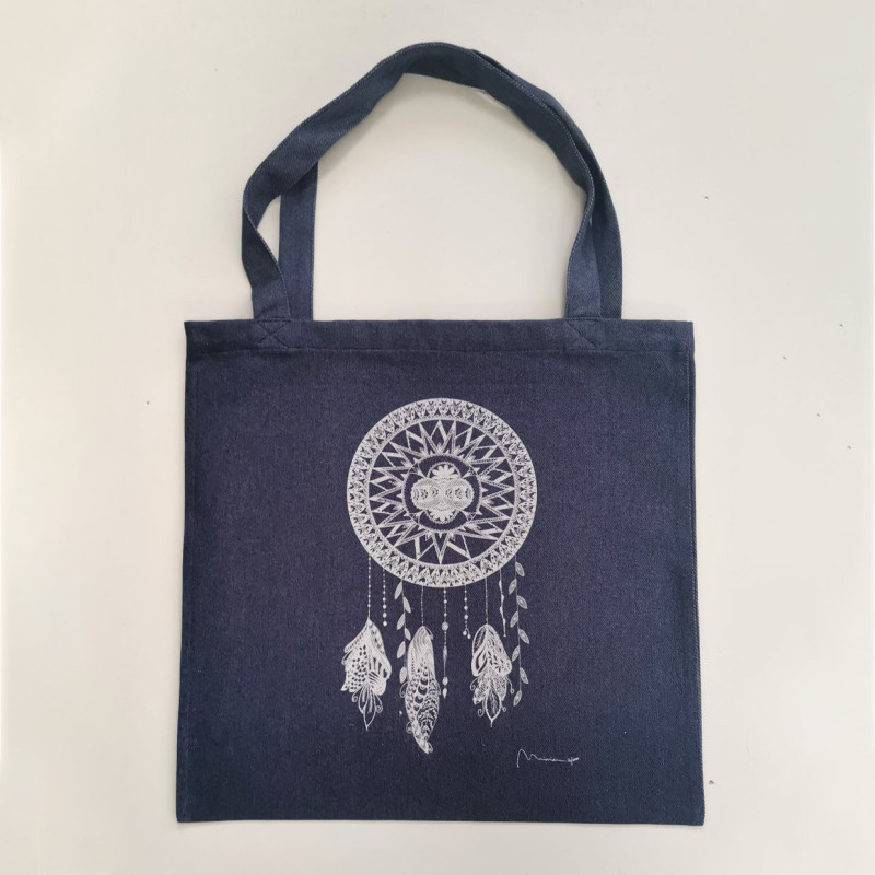 Totebag vaquera de gran gramatge i el disseny "Soñaré" de l'artista Miriam Macian. Col·lecció “Zentagle”.