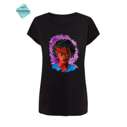 Camiseta entallada y con cuello abierto, fabricada con algodón orgánico y diseño artístico solidario de Luis Bolumar. Inspirada en nuestro proyecto solidario con Guinea.