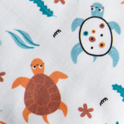 Su funda de algodón suave muestra un adorable diseño de tortugas que despierta la imaginación y aporta un toque de alegría y color al descanso infantil.